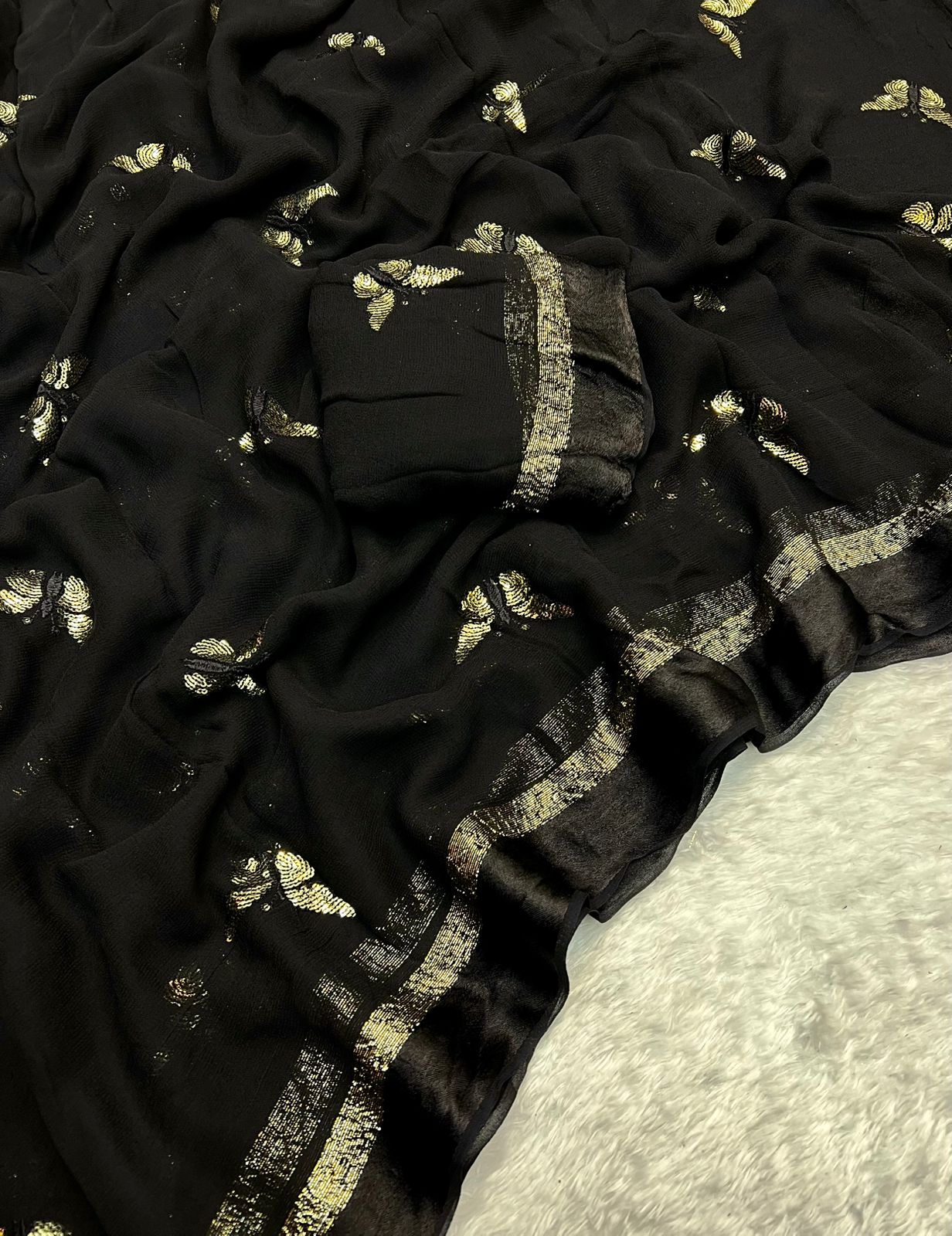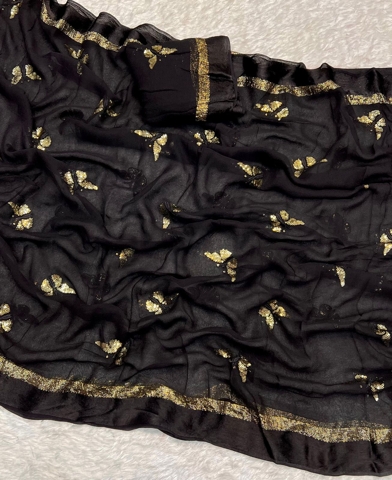 Satin Patta Pure Viscose Georgette Saree