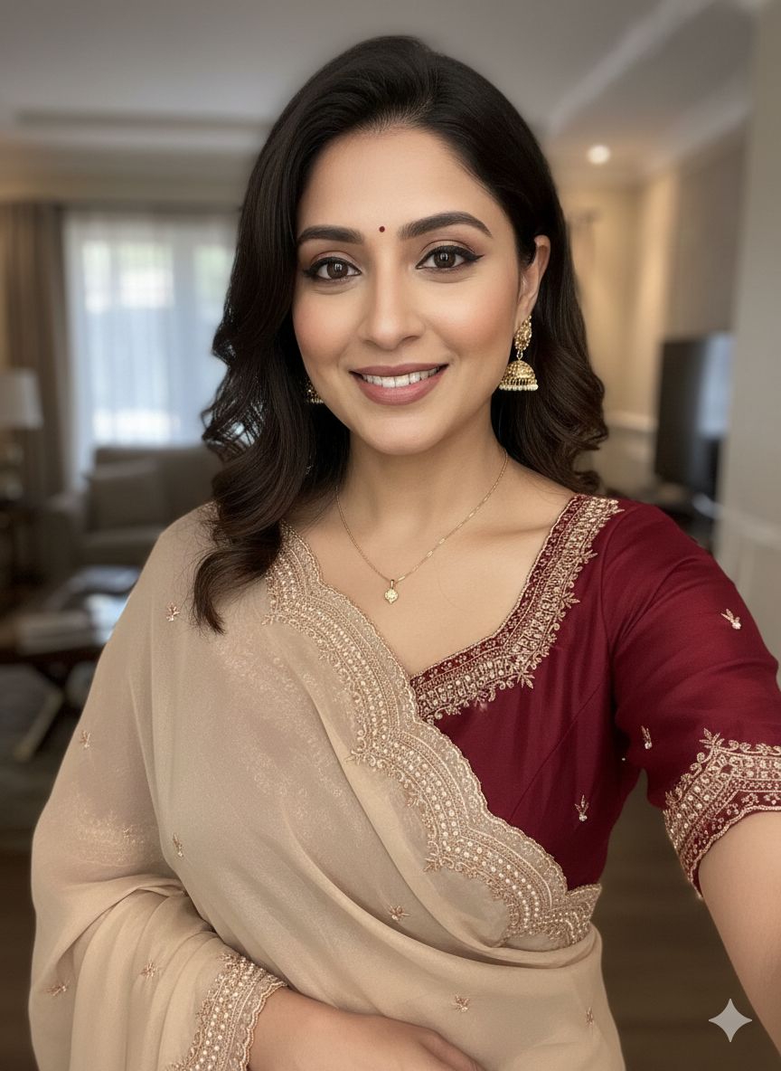 Star Georgette Multi Emrodairy Moti Border Work Saree with Contrast Running Blouse
