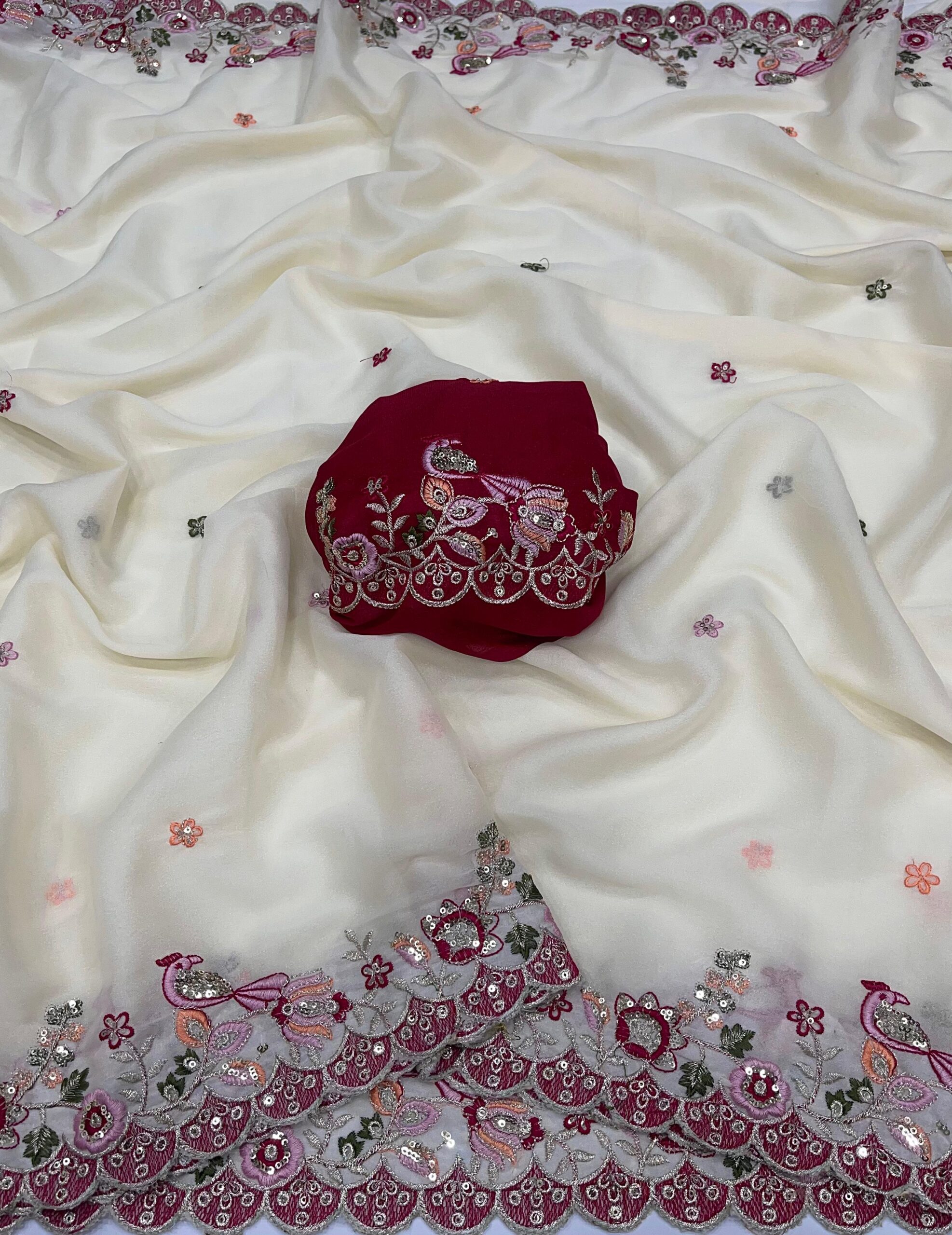 Star Georgette saree with Heavy sequins embroidery work
